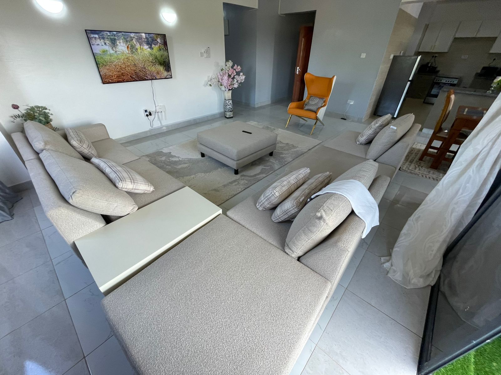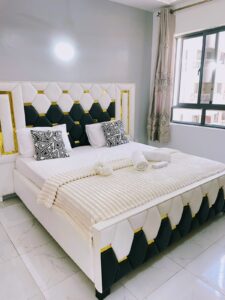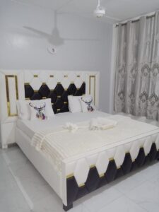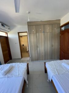 This apartment building is in a quiet and secure area of Nayli, Mombasa. It has about 24 units, free parking in the secured compound with security 24/7. The apartments have been built 2023 with modern facilities such as a lift and outside pool for the residents and visitors of the complex. Our apartment is on second floor with free parking, lift, pool and access to the roof terace.