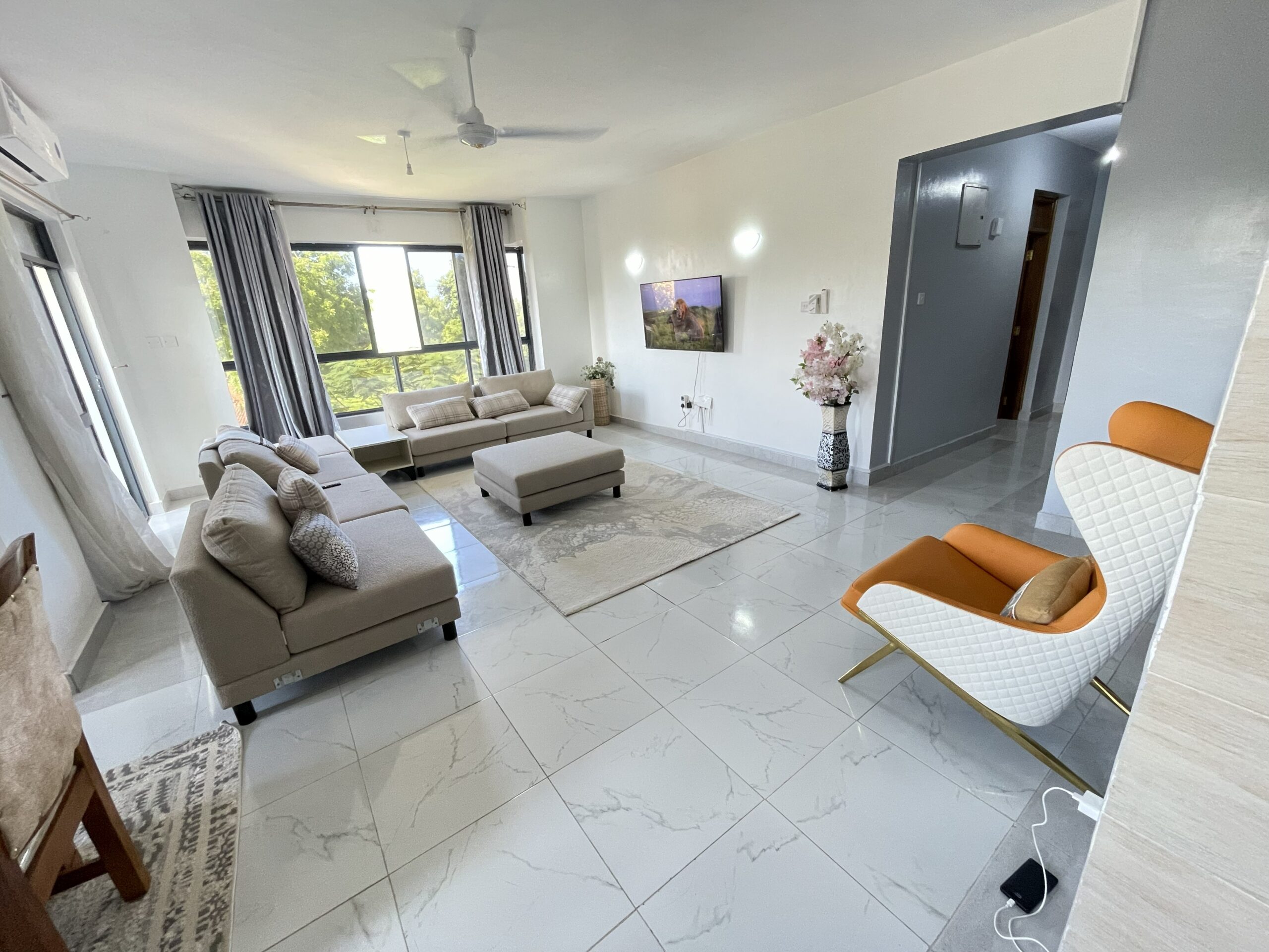 njoy a spacious, modern 3 bedroom penthouse with close proximity to the beach: - Every room has balcony - All rooms have Air Condition and ceiling fans - Pool - Quite and save area - Nice dining area and terace - Large & comfortable sofa set - Fiber internet - Smart TV with Netflix - Each bedroom has a private bathroom & hot showers - Fully equipped kitchen --> Check alailability and book at AirBNB --> Contact us at info@mombasa-homes.com