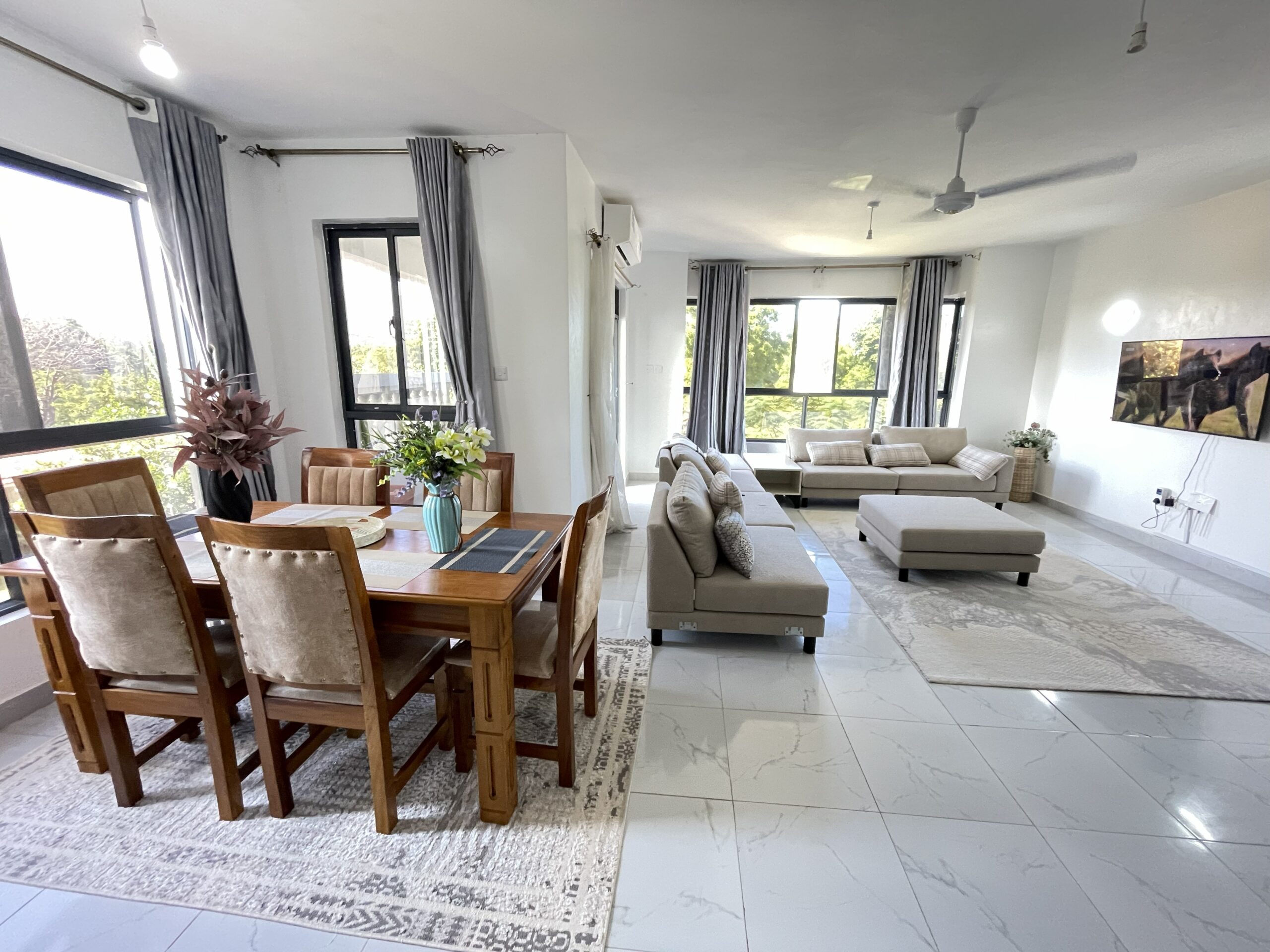 njoy a spacious, modern 3 bedroom penthouse with close proximity to the beach: - Every room has balcony - All rooms have Air Condition and ceiling fans - Pool - Quite and save area - Nice dining area and terace - Large & comfortable sofa set - Fiber internet - Smart TV with Netflix - Each bedroom has a private bathroom & hot showers - Fully equipped kitchen --> Check alailability and book at AirBNB --> Contact us at info@mombasa-homes.com