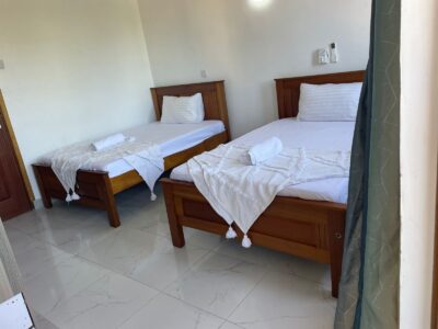 This apartment building is in a quiet and secure area of Nayli, Mombasa. It has about 24 units, free parking in the secured compound with security 24/7. The apartments have been built 2023 with modern facilities such as a lift and outside pool for the residents and visitors of the complex. Our apartment is on second floor with free parking, lift, pool and access to the roof terace.